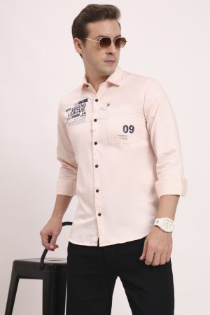 Men’s Cotton Casual Printed Striped Stylish Full Sleeves T-Shirt – Pink