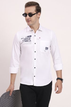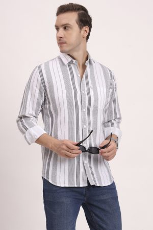 Men’s Cotton Casual Printed Striped Stylish Full Sleeves T-Shirt – White