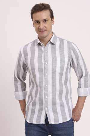 Men’s Cotton Slim Fit Casual Printed Checkered Stylish Shirt – White Grey