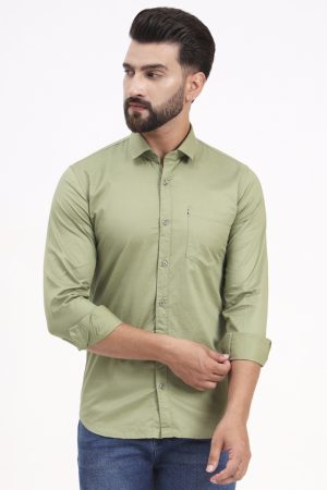 Men's Thistle Green Satin Casual Solid Regular Fit Full Sleeves Shirt with Spread Collar